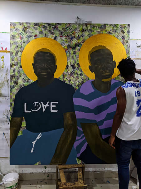 Gindin Mangoro (Hausa) Under the Mango Tree, by portrait artist, Collins Obijiaku is a refreshing, questioning body of work and debut solo presentation whereby the artist proposes “to reach out to people and immortalise my friends”. As with all genuine attempts at portraiture, it goes much deeper.