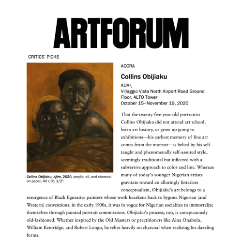 CRITIC’S PICKS AYODEJI ROTINWA, ARTFORUM NOVEMBER 9, 2020 FULL ARTICLE RelatedAdora Mba’s ADA Contemporary is reimagining the Art Scene: From Accra to the WorldAugust 22, 2025CULTURED Magazine : Inaugural Young Dealers ListJune 17, 2025ARTFORUM – The Alchemy of Colour and MatterApril 18, 2025