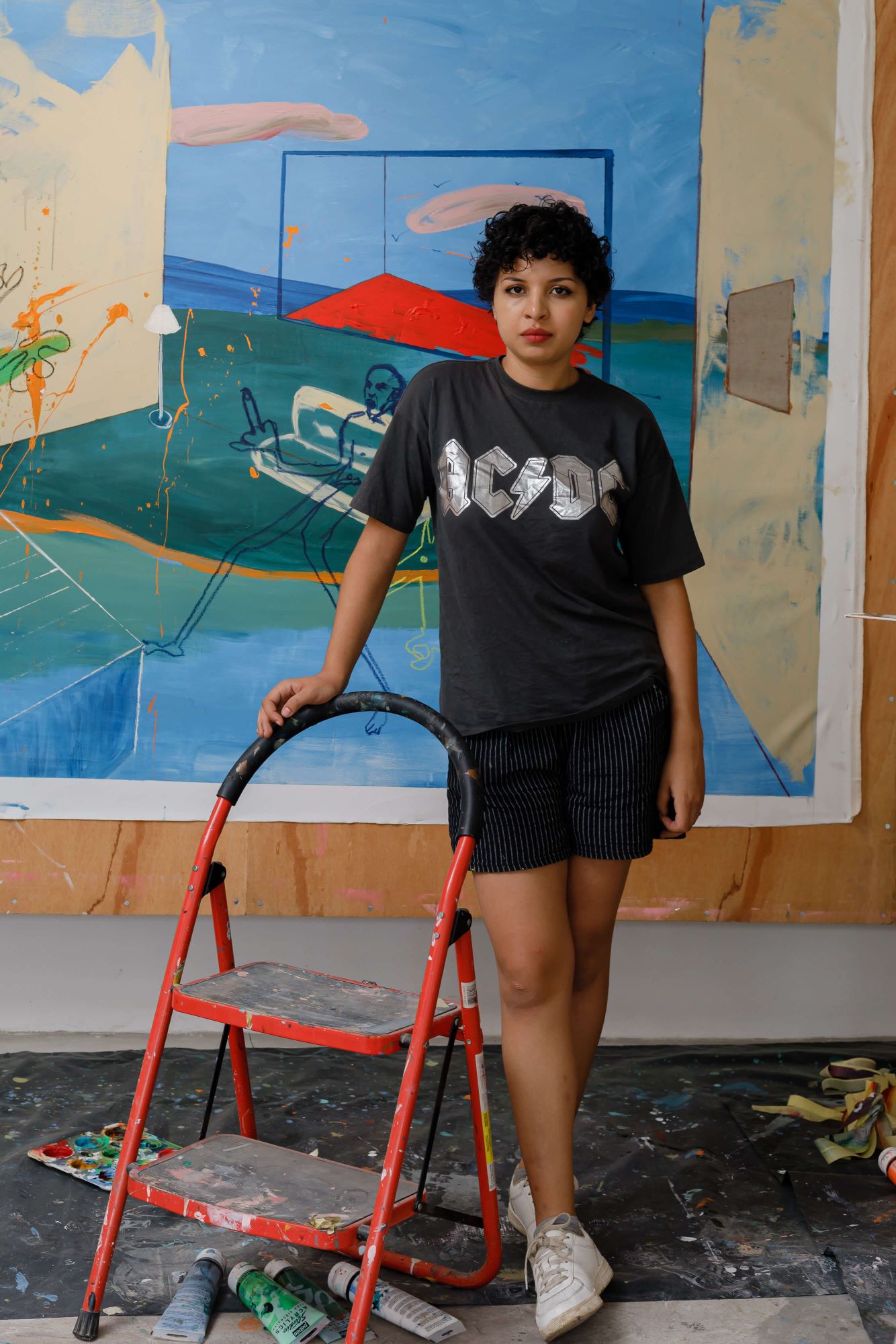In Painting With My Eyes Closed, Youssra invites the viewer to venture into the depths of their memories to cypher where the interpretations they form on their own truly originate. With the use of the surreal composition of spaces and vibrant distorted landscapes, childlike wonder meets mature truths of life at an equilibrium, presenting us with a state of pure bewilderment, uncertainty and the wonderful conundrum of facing our honest intimate selves.