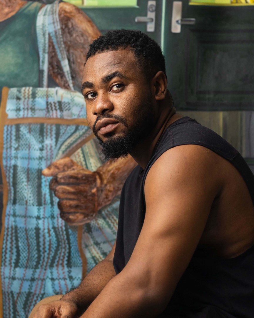 Primarily working within figurativism, Muhammad uses oil pigments and employs the impasto technique in his painting process to imbue his characters with texture and depth. This approach serves as a visual metaphor, symbolizing the complexities embedded within his narratives. In contrast, background elements in his paintings remain deliberately flat, creating a dynamic interplay of visual dimensions that mirror the nuanced layers of the stories he explores. Influenced also by the insightful storytelling abilities of musicians, poets and rappers who skillfully navigate critical matters using astute wordplay, his works seek to mirror this weaving of artistry and social commentary.
